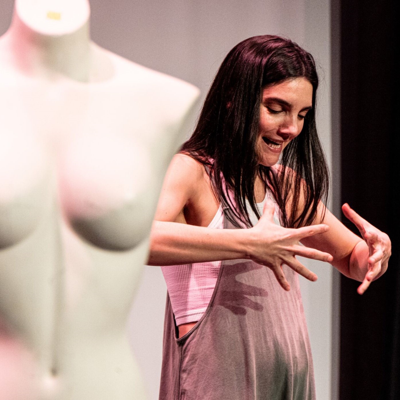 Entre le stand-up et drame théâtral, la parole brise le quatrième mur et se veut directe et authentique. L’utilisation de la vidéo et la danse viennent enrichir le propos et l’ancrer dans le corps.
